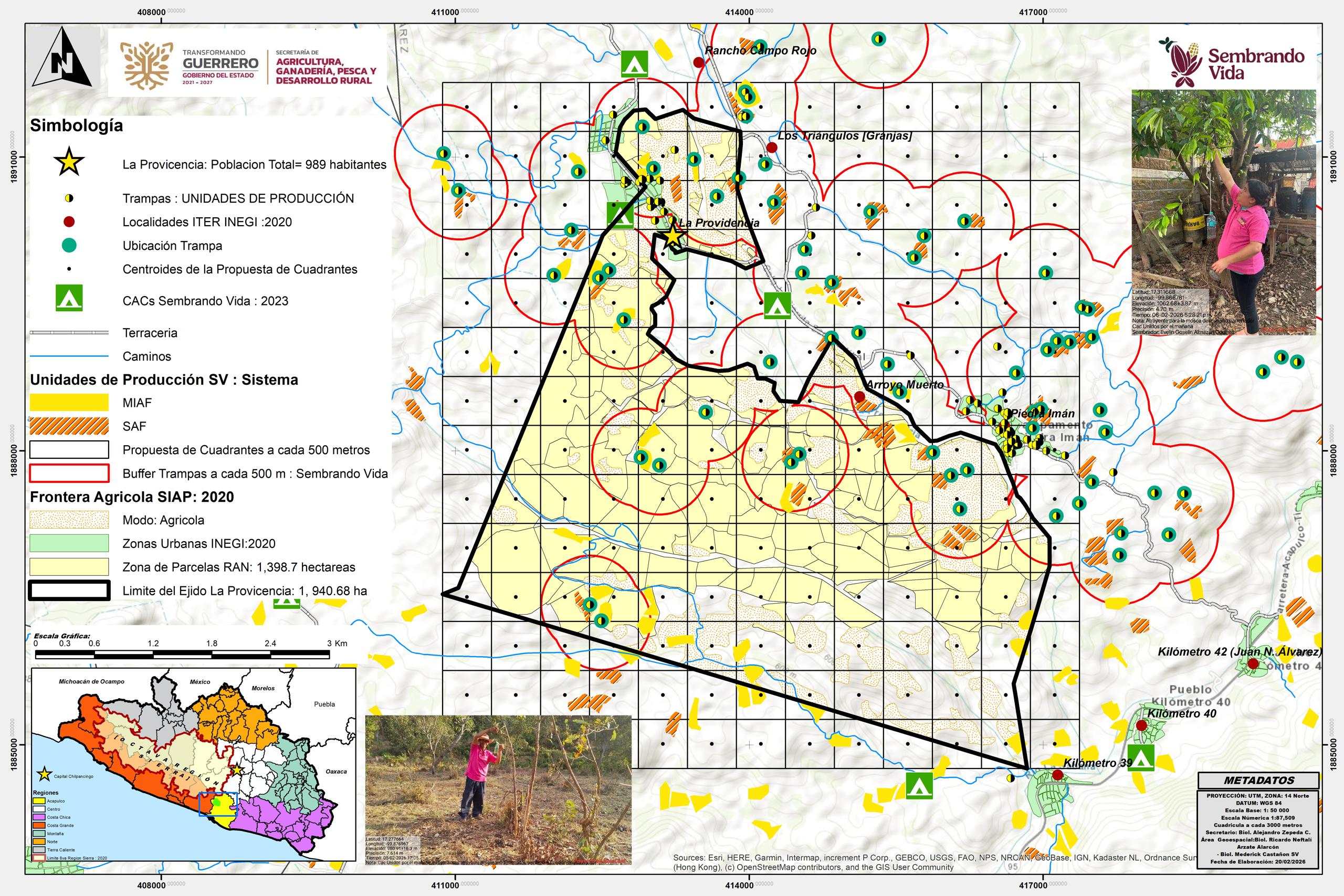 Por medio de un Sistema de Información Geográfica (SIG) y sobre la base de los límites de polígonos, localidades rurales del ITER INEGI- 2020 , datos obtenidos en mesas de trabajo con organizaciones y población afectada por dicho fenómeno climatológico y datos geoespaciales de los límites de los ejidos y núcleos agrarios del Registro Agrario Nacional (RAN)...